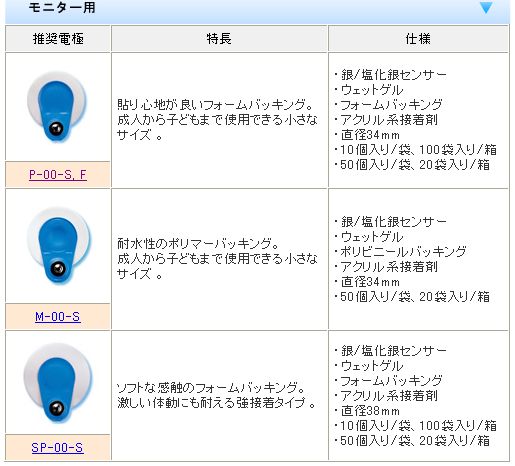 | ブルーセンサー | M-00-S | ★50個 | 1000個 | ¥3,600 | ¥72 | 病棟モニター用 |