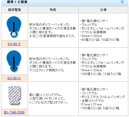 | 〃 | SU-00-F | ★60個 | 600個 | ¥2,760 | ¥46 | 心電図12誘導用 |